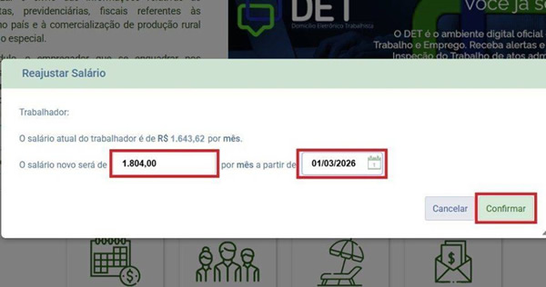 Passo 4: complete o campo com o novo salário e a data do reajuste.